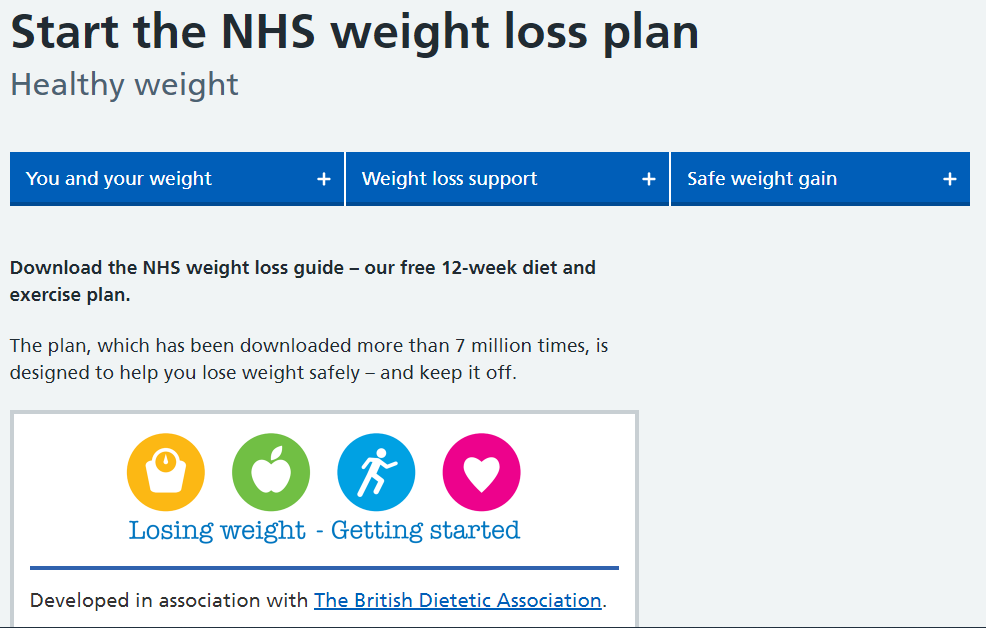 If you need any further advice with your weight or diet, there are options for referral to weight management groups locally. Please speak to your healthcare professional for further information. There are also some online resources to try at home, such as: