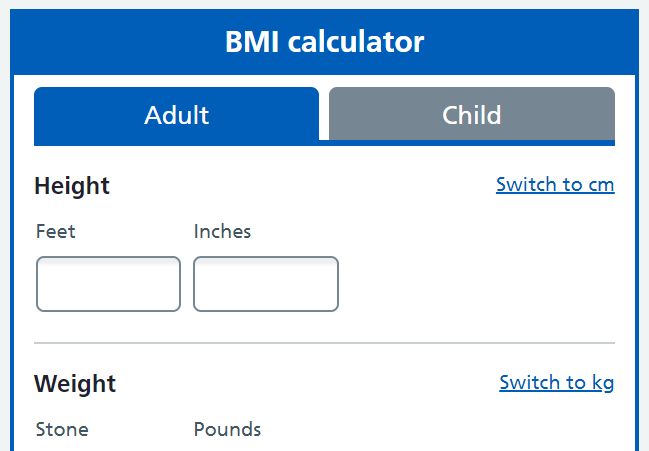 You can check your BMI using the BMI calculator
