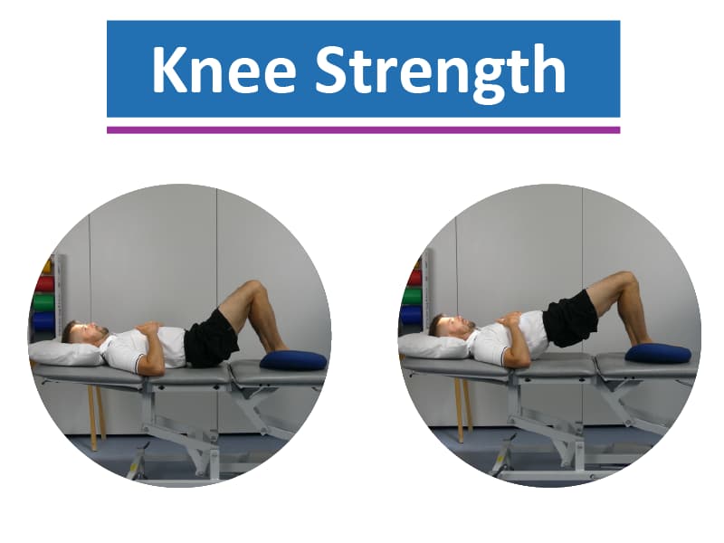 As you straighten your knee, try to tighten your thigh muscles to push the knee down as far as possible.