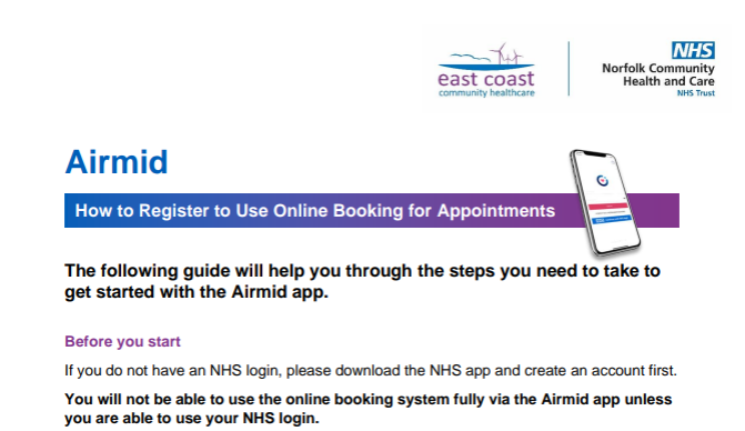 You will not be able to use the online booking system via the Airmid app unless you have an NHS login.