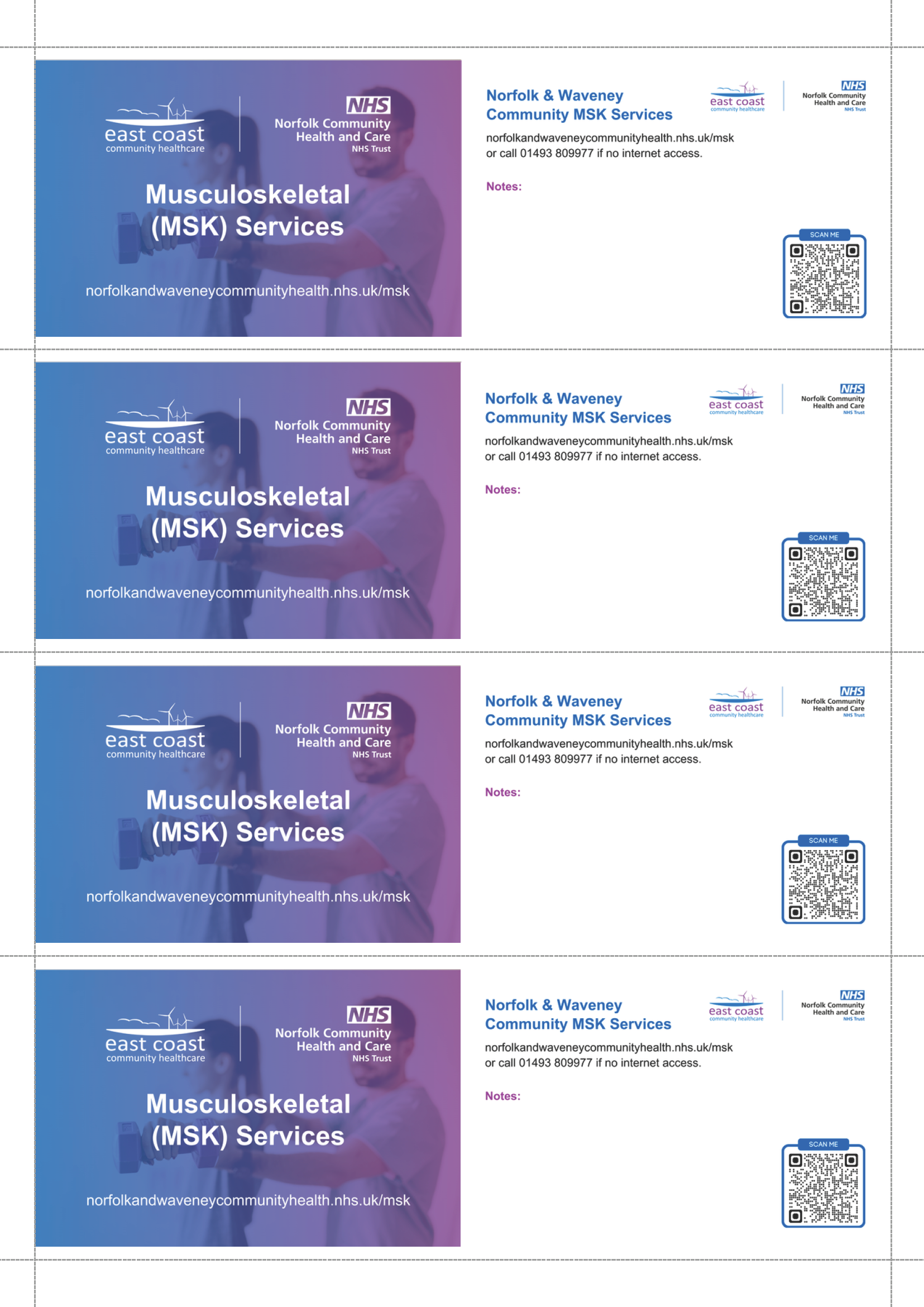 As part of a joined up equitable and collaborative MSK service for Norfolk & Waveney area, we’ve developed a portfolio of communications/leaflets/posters available for our health care practitioner colleagues to use and to support patients going forwards.