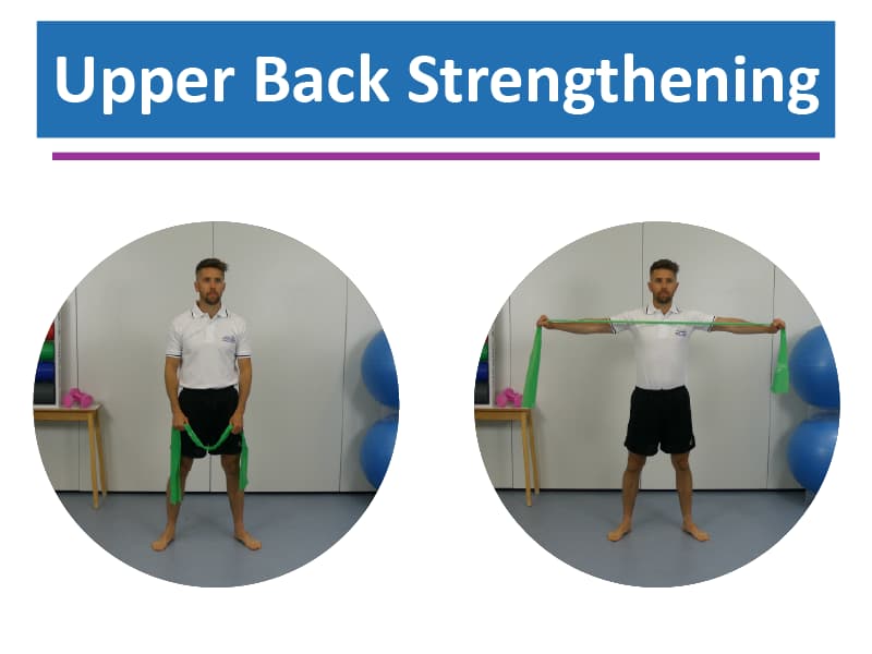 Exploring some gentle exercises to help your upper back get moving and your muscles get stronger can often help move things forwards. We have provided a number of exercises at the bottom of the page for you to explore and start your recovery.