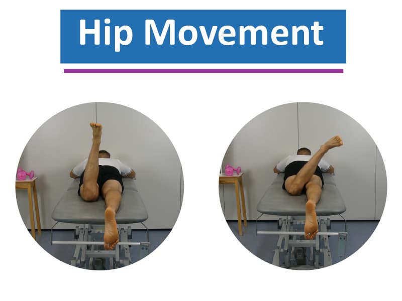 Lying on the bed. Keeping your heel on the bed, slide your leg out to the side. Using a plastic bag or magazine under your heel might help your heel slide easier.