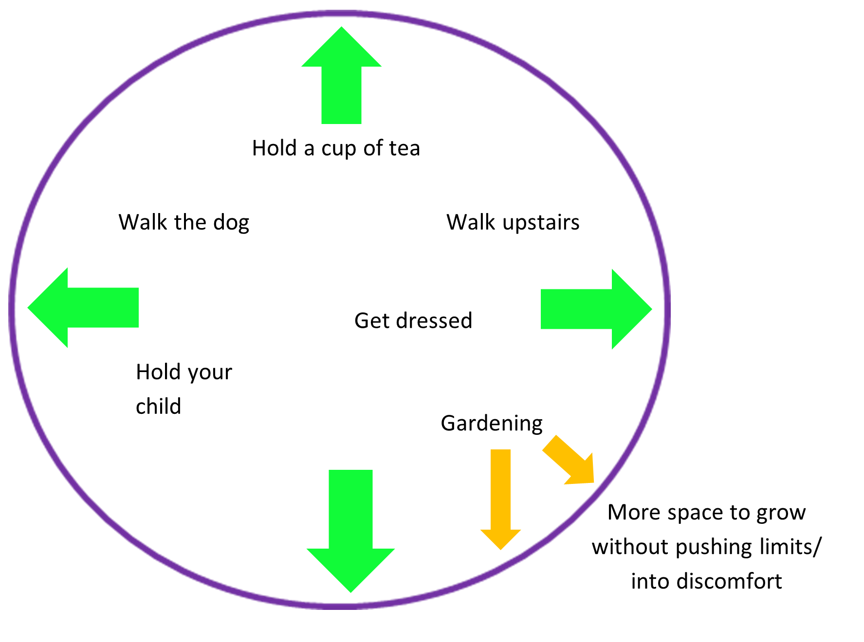 If you find yourself doing more of something (like a heavy day in the garden), then occasionally you may find that you push your body’s ability to cope with things. Certain things then start to sit outside the bubble and you may find you get discomfort.
